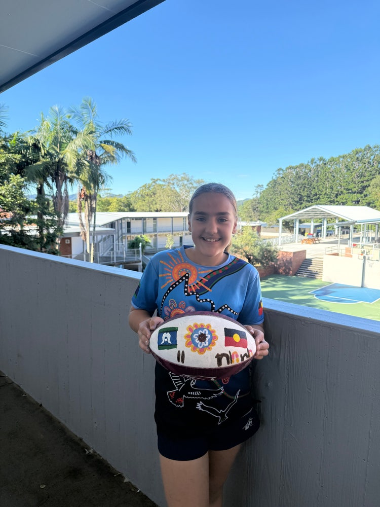 Violet was chosen to paint a football as part of the Brisbane Broncos Indigenous Round celebrations later this season. The finished products will be displayed at the Red Hill Clubhouse.