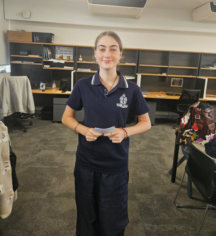 Charlie in Year 9 today winning the regional round of the 2025 Junior Secondary Speaking Award competition.