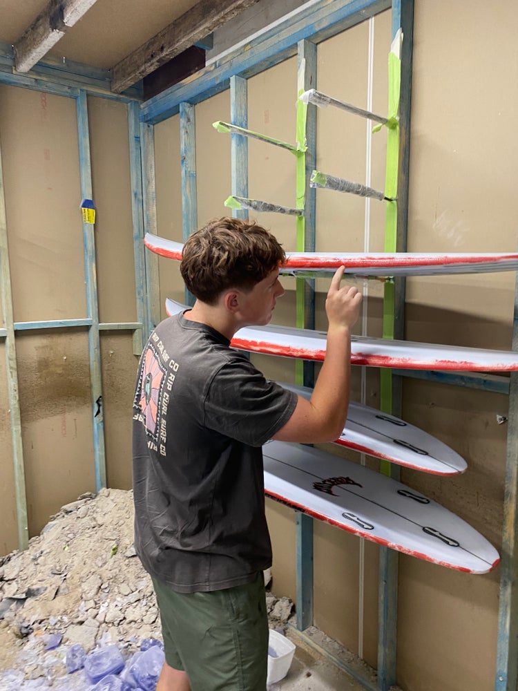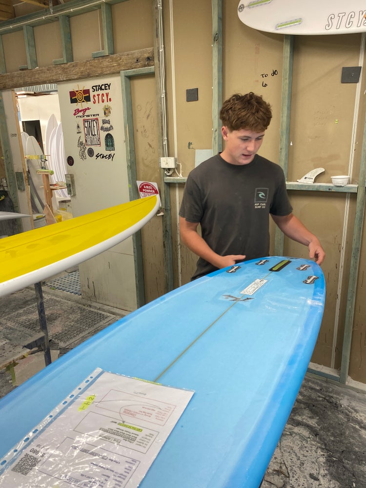 In Year 10, Harry pushed further, landing his second internship at STCY Surfboards in Murwillumbah. This opportunity took persistence—he dropped into the warehouse several times with photos of his work before finally being taken on. Once inside, Harry became part of the team, gaining skills in all areas of shaping as well as insights into the business and marketing side of the industry.